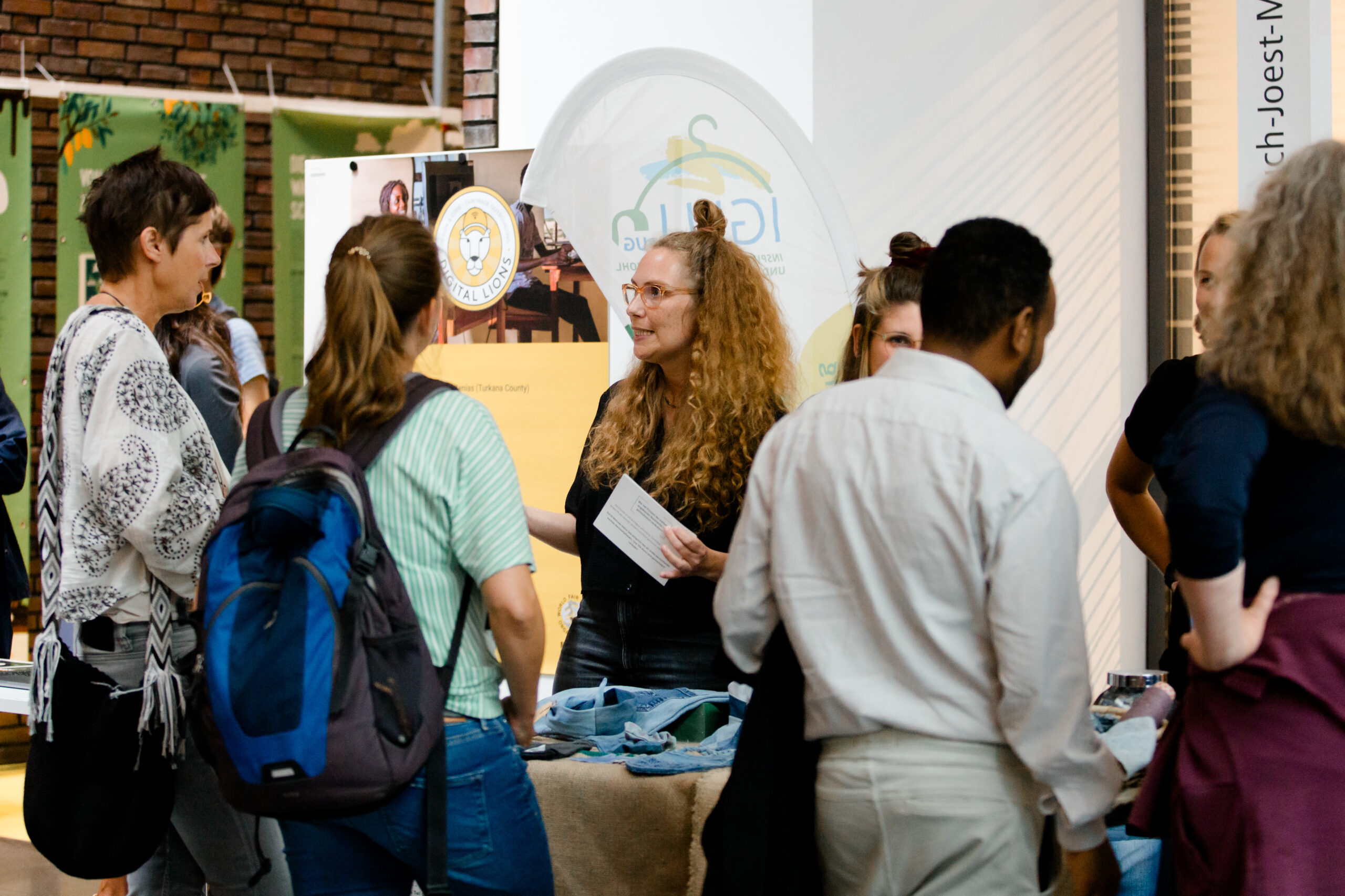 Die Besucher*innen konnten auch dieses Jahr wieder ein buntes Programm rund um die Welt des Fairen Handels entdecken. Auf einem Ausstellermarkt im Foyer des Rautenstrauch-Joest-Museums stellten Initiativen aus Köln und Umgebung ihre Projekte und Engagement vor, beispielsweise im Bereich Schule und Bildung. Auch innovative Unternehmer*innen aus der Region, die sich für den Fairen Handel einsetzen, präsentierten faire und nachhaltige Alternativen zu konventionellen Produkten unter musikalischer Begleitung des DJs Harmon.